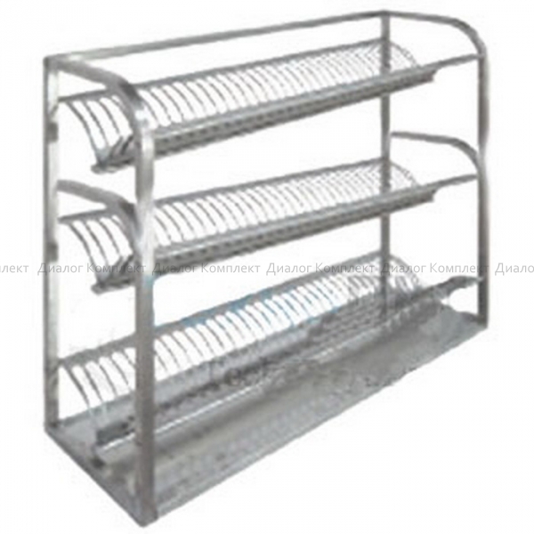 Предназначена для сушки и хранения тарелок на предприятиях общественного питания. Полка оснащена 3 касетами, ёмкостью по 35 тарелок каждая, под которыми установлен пластиковый лоток для сбора стекающей жидкости. Конструкция полки разборная. Для крепления полки к стене на кронштейнах предусмотренны отверстия. Полка и касеты изготовлены полностью из нерж. стали.
