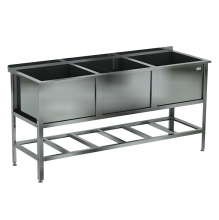 Ванна моечная трехсекционная сварная с бортом ВМСБ/3-198/70/430