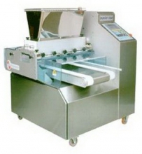 Отсадочные машины предназначены для производства различных видов печенья, а также сырцовых пряников. Машины работают: • с густыми тестами (курабье, овсяное, миндальное, заварное и пр.) при наличии дозировочной группы валкового типа; • с жидкими тестами (бисквитное, безе) при наличии дозировочной группы насосного типа; • с твердыми тестами (пряничное) при наличии устройства струнной резки. Конструктивные особенности: • изготовлены из алюминиевого сплава и нержавеющей стали; • оснащены сенсорным дисплеем на русском языке; • компьютер с памятью на 100 различных программ; • начальная высота стола при отсадке регулируется:  у серии BISKY – вручную;  у серии DUERO – программируется; • в конце цикла отсадки происходит обратное вращение валов (антикапельная функция). В комплекте: • дозировочная группа валкового типа; • 4 комплекта насадок по 6*/9* шт.:  прямые гладкие пластиковые насадки;  прямые зубчатые бронзовые насадки;  гладкие со смещенным центром из нержавеющей стали;  зубчатые со смещенным центром из не