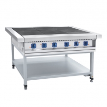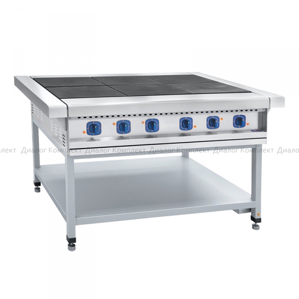 Плита электрическая 6-ти конфорочная Abat ЭП-6П используется на предприятиях общественного питания и торговли для приготовления первых, вторых, третьих блюд в наплитной посуде, а также для жарки полуфабрикатов из мяса, рыбы, овощей. Особенности: - Чугунные конфорки 295x417 мм в качестве нагревательных элементов оснащены двумя ТЭНами, что обеспечивает быстрый и равномерный нагрев, а также гарантирует долгий срок эксплуатации конфорок. - Разогрев до +480 °C за 30 минут. - 4-х позиционные переключатели. - Площадь конфорок - 0,72 кв.м. Конфорки образуют ровную поверхность, что обеспечивает удобное и легкое перемещение наплитной посуды. - Подставка с полкой выполнена из окрашенного металла. - Модель имеет регулируемые по высоте ножки.