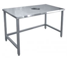 Стол для сбора отходов ССО-1 разборный, представляет собой стол с отверстием для сбора пищевых отходов на предприятиях общественного питания. Сварной каркас из квадратной трубы очень прочной конструкции, крашеный порошковой краской, выдерживает большие нагрузки и имеет долгий срок службы. Ножки с резиновыми вставками, регулируются по высоте. Возможно исполнение полностью из нержавеющей стали. Предназначен для использования в столовых, ресторанах, кафе, барах, пищеблоках.