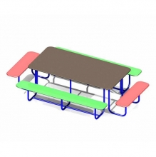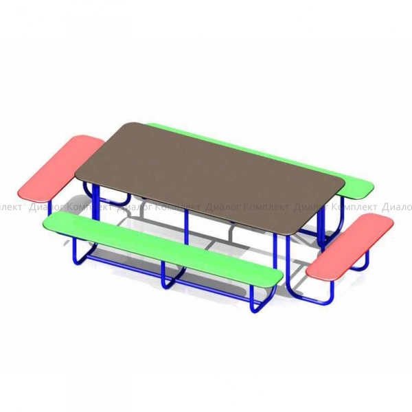 Стол со скамьями прямоугольный послужит отличным уличным игровым оборудованием для оснащения детского сада. Благодаря вместительности, за таким столом очень удобно проводить совместные групповые занятия, играть в настольные развивающие игры, что развивает навыки общения между ребятами. Материалом для изготовления сидений и столешницы является высококачественная влагостойкая фанера, окрашенная нетоксичными порошковыми красками. Каркасом служит металлическая профильная труба, обеспечивающая устойчивость. Предотвратить появления возможных травм поможет отсутствие острых углов и утопленная фурнитура. Габаритные размеры: ширина 290, глубина 210, высота 65 см.