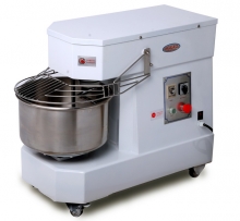 Тестомес спиральный используется для замеса дрожжевого теска. Предназначен для использования в ресторанах, кафе, пекарнях, столовых и кондитерских. Материал корпуса окрашен антикоррозийной краской белого цвета, предотвращающая коррозию тестомесильной машины. Дежа тестомеса фиксированная и выполнена из нержавеющей стали. Рабочая голова тестомеса фиксированная с ременной системой передачи, что делает работу его более тихой.