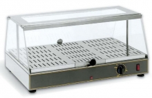 Витрина настольная тепловая cпециально разработаны для закусочных, пивных баров, пекарен и чайных. Витрины рассчитаны на гастроемкость GN 1/1 высотой 25 мм. Эти тепловые витрины поддерживают постоянную температуру (до 95 градусов) выставленных в ней пирогов, пиццы, круассанов, булочек, закусок, сырных слоек, сэндвичей и других изделий, сохраняя их сочными и вкусными благодаря контролю влажности. Полностью панорамный обзор позволяет представить Ваш товар в наилучшем виде. Продуманная конструкция данной модели отличается практичностью: витрина открывается как спереди, так и сзади, оснащена съемной полкой для выкладки товара, выполненной из нержавеющей стали с верхней секцией из стекла, что обеспечивает простоту очистки и технического содержания. Витрины имеют термостат, рассчитанный на температуру от 0 до 95 градусов С, двухпозиционный выключатель и сигнальную лампочку, поставляются в двух цветовых исполнениях - стальном и золотистом. Ножки ветрин - регулируемые.